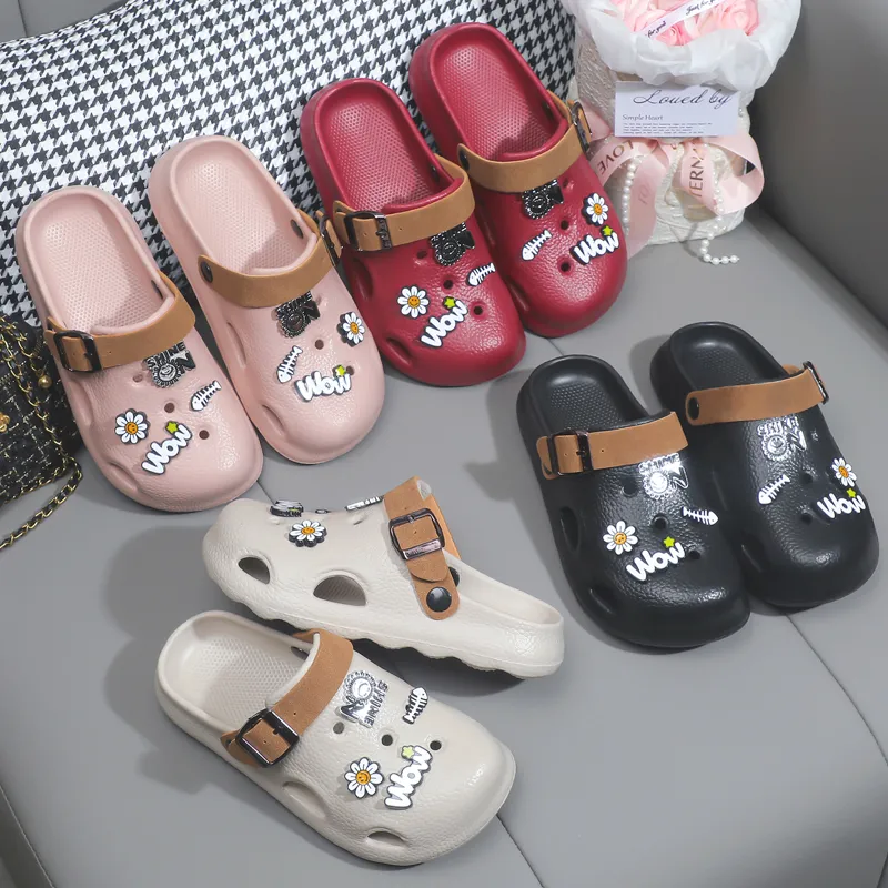 Womens EVA Hole Shoes Anti-Slip Thick Sole Slippers with Outer Decorated Elements Two-Wearing Summer Beach Cave Clogs